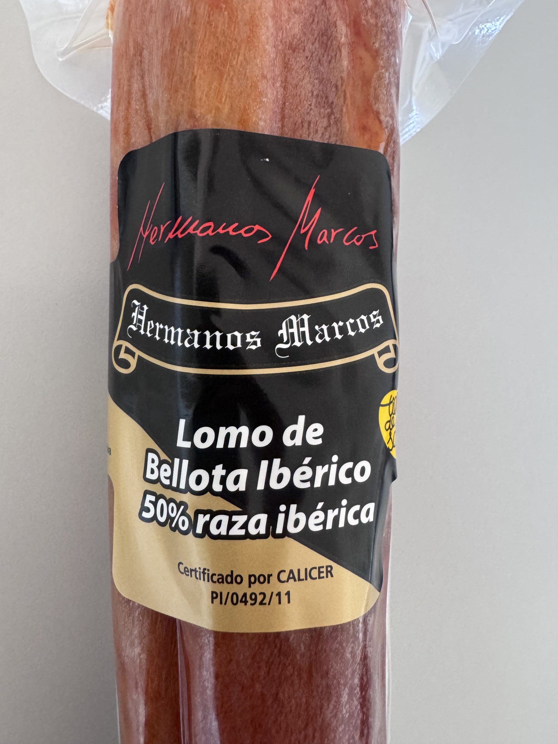 Ingredientes: Lomo de bellota ibérico, sal, pimentón y ajo. Las piezas tienen una curación minima de 6 meses.